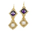 Earrings length: As per the sample shown, these earrings are 2-7/8" long from the top of the ear wire to the bottom of the pearl drop. Swingy and beautiful!
